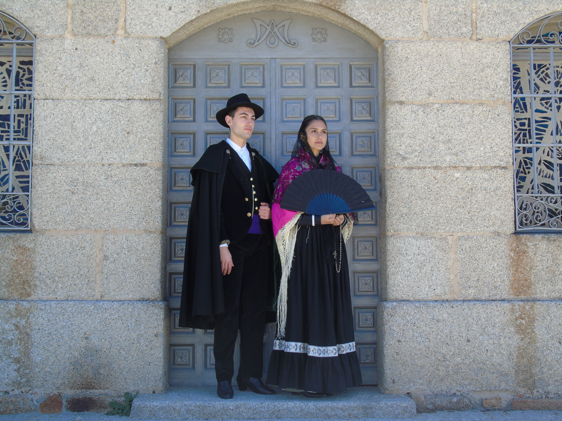 El hombre, se viste con un traje de pana negro, pero esta vez en lugar de chaleco, utiliza chaqueta, camisa y faja y le acompaña un sombrero negro. Durante los meses de frio, solía llevar una capa negra de paño como prenda de abrigo.
